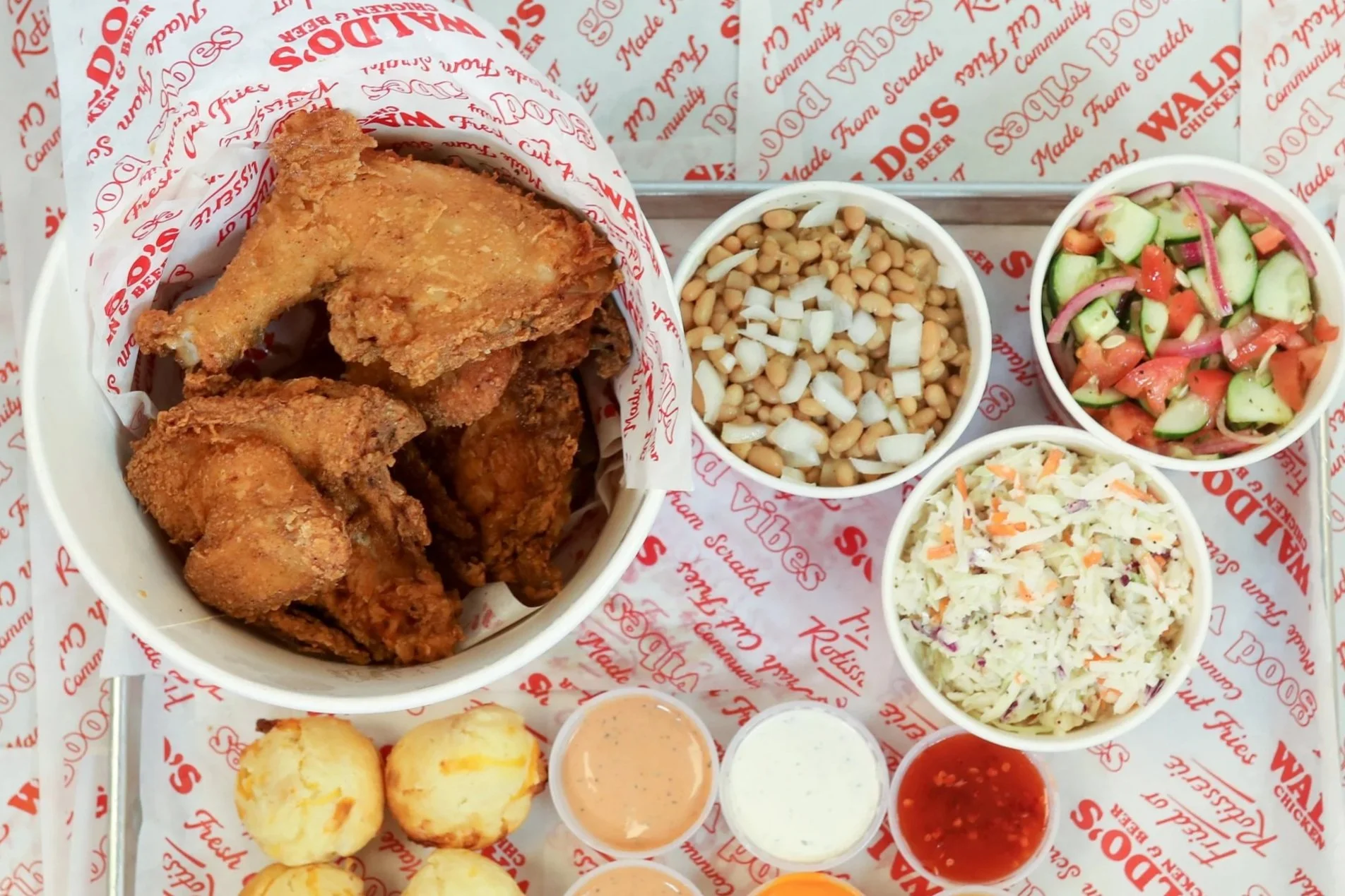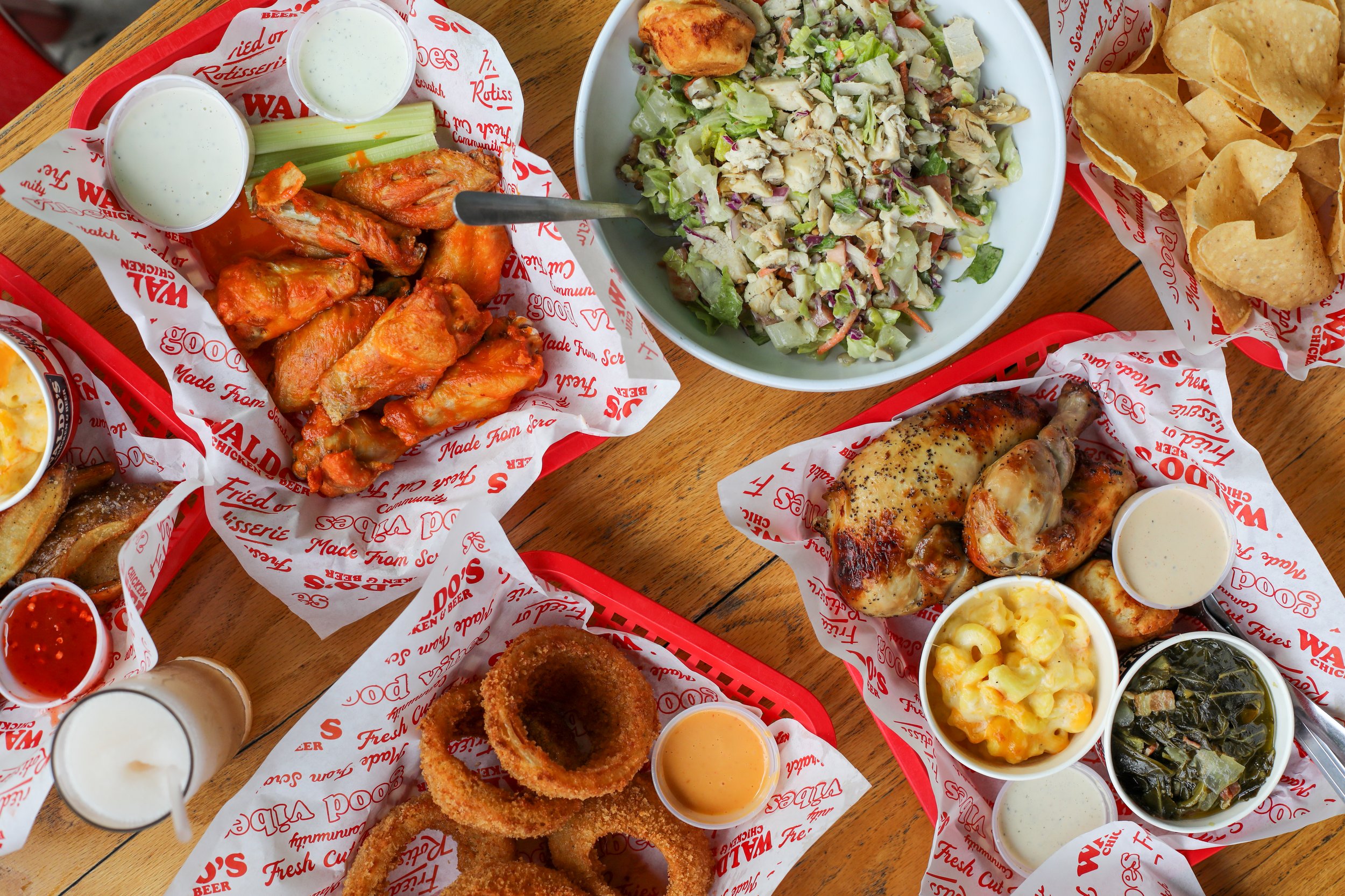 The chicken-verse is crowded, we get it. There are lots of options out there, but we feel pretty confident that your search for the perfect bird ends here at Waldo’s. Part of the fun is the search, but there’s nothing like finding your new go-to. Waldo’s Chicken & Beer is all about great chicken, cooked two ways: Southern Fried and Rotisserie. Paired with a scratch-made menu of Southern sides, delicious sauces and more and you’ll see why your search for great chicken led you to Waldo’s.